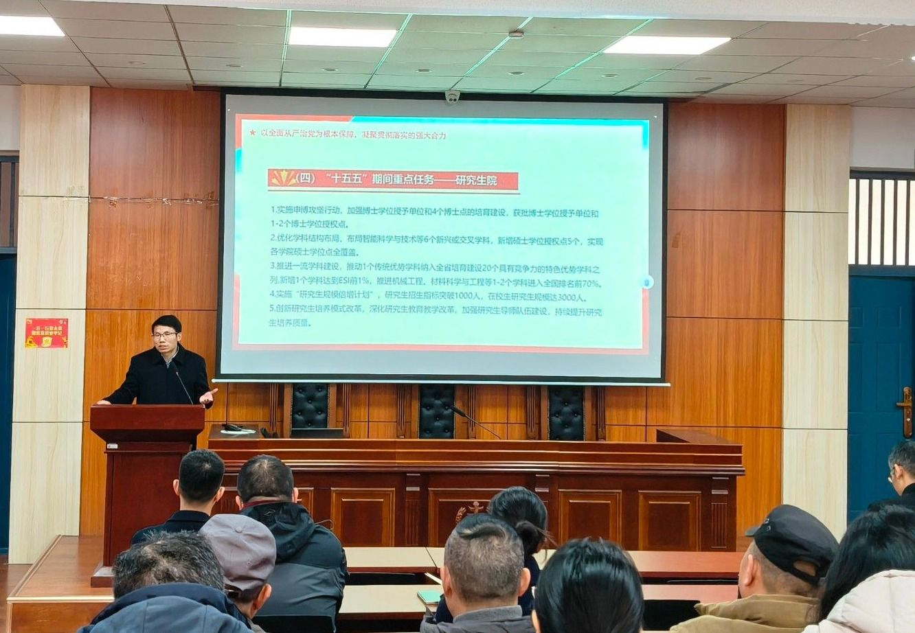 本网讯(文/图延燕华)12月11日下午,公司党委常委、副董事长王生怀在3325教室讲授“学习贯彻党的二十届四中全会精神 凝心聚力开创‘十五五’新篇章”专题党课,研究生院、校园建设与管理处、图书馆(档案馆、校史馆...