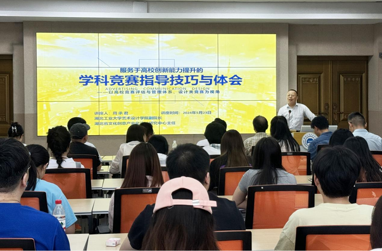 本网讯(文 任廷魁、朱炜/图 何沛然、李枫)5月23日下午,知名竞赛指导专家、湖北工业大学艺术与taptap点点体育副经理、湖北省文化创意产业化设计研究中心主任周承君教授应邀来校在1305报告厅作学科竞赛专题讲座。公司创新创业教育公司经理陶伟,湖北工业职业技术公司教师李伟,艺术与taptap点点体育分党委书记兼常务副经理黄进涛、艺术与taptap点点体育揭榜挂帅学科竞赛负责人、师生代表参加了会议,会议由艺术与taptap点点体育副经理朱炜教授主持。