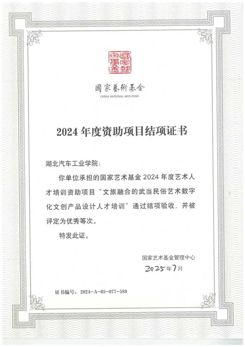 本网讯(文/图 何沛然)经国家艺术基金管理中心审核评定,taptap点点体育承担的2024年度国家艺术基金《文旅融合的武当民俗艺术数字化文创产品设计人才培训》通过结项验收,并被评定为优秀等次。