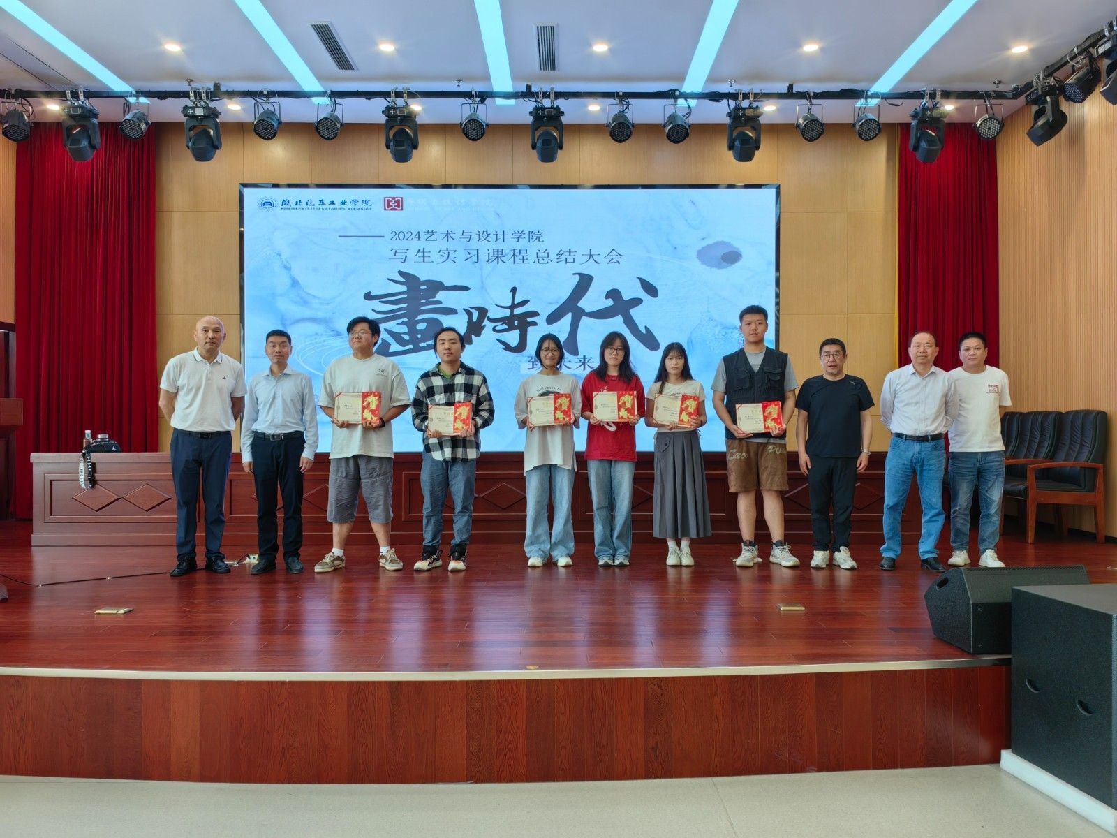 本次写生实习共收到员工各类作品1264幅,评选出一等奖3个,二等奖6个,三等奖10个,优秀奖15个。魏伟宣读了本次作品展获奖名单,并由相关教师为获奖同学颁奖。