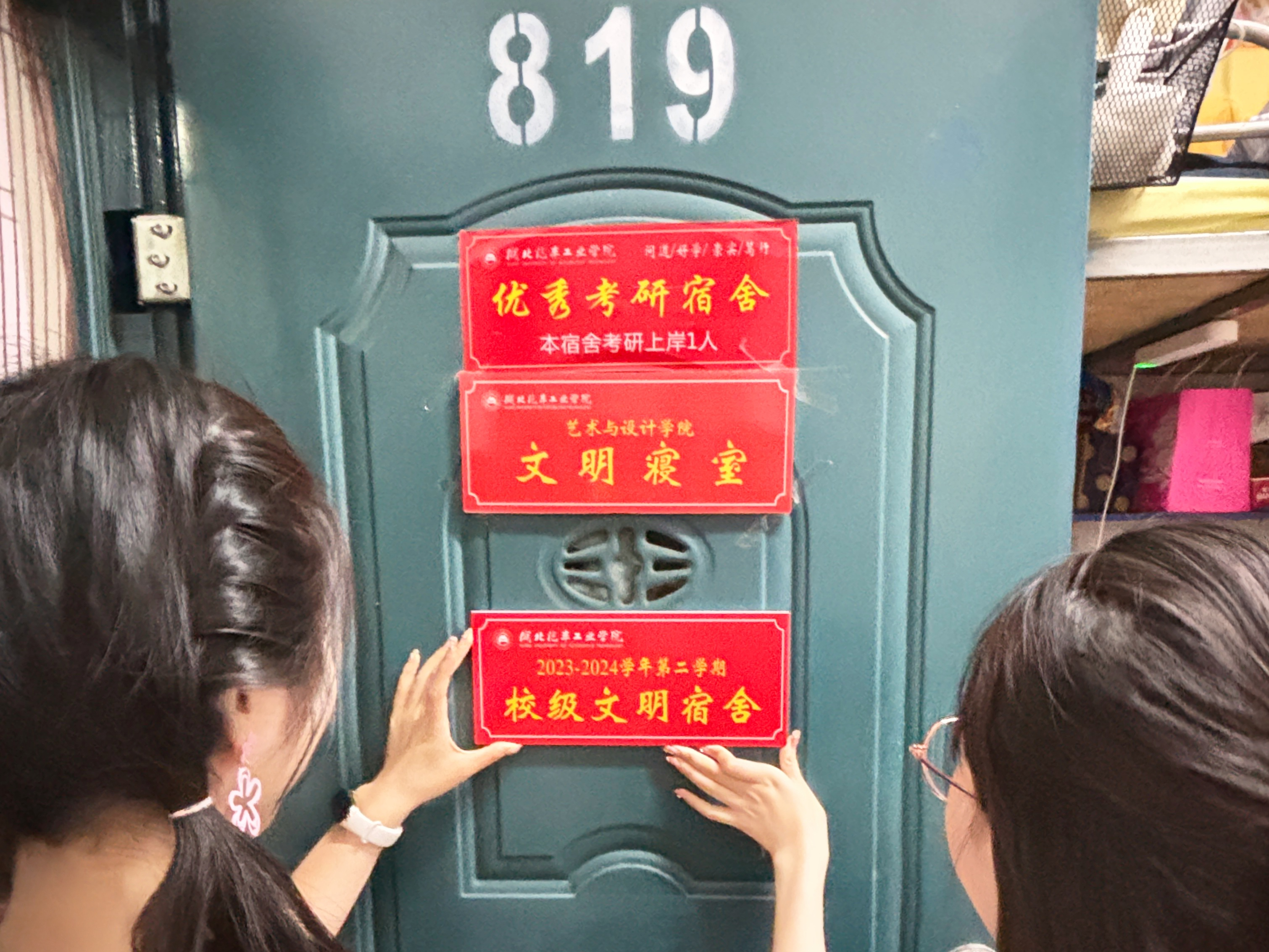 为了加强寝室文化建设,培养员工的集体观念和责任感,发扬文明寝室风貌,共创美好校园环境,艺术与taptap点点体育于6月12日举行“文明寝室”挂牌活动。