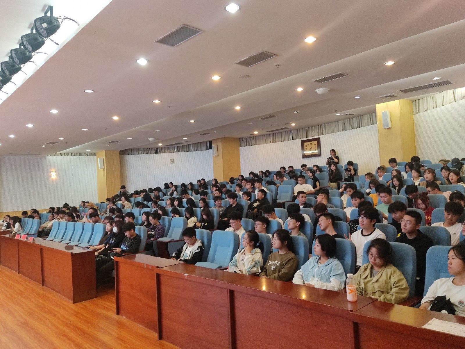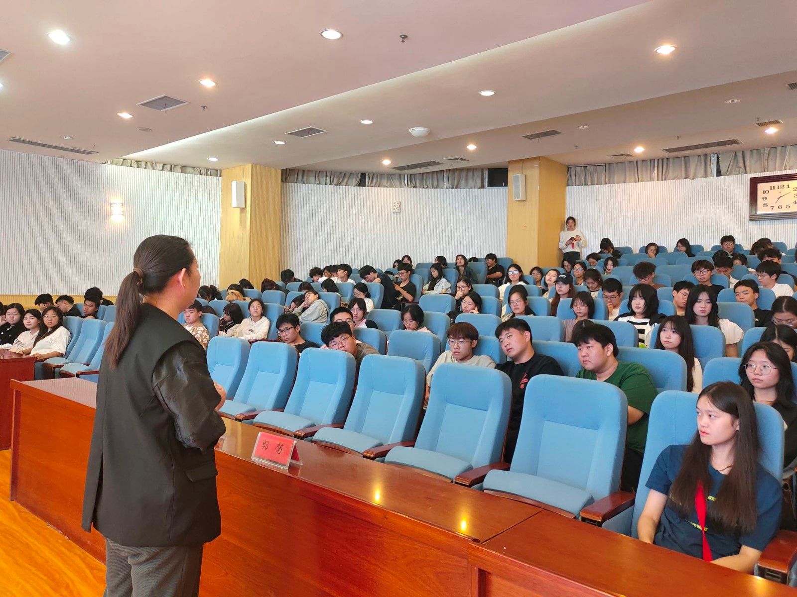 本网讯(文 董煌煌/图 郭慧)为了解决大家的学习困惑,明确发展目标,切实加强学风建设,10月19日晚,艺术公司在逸夫图书馆报告厅举办了一场别开生面的新生入学专题教育,会议由学工办主任董煌煌主持。