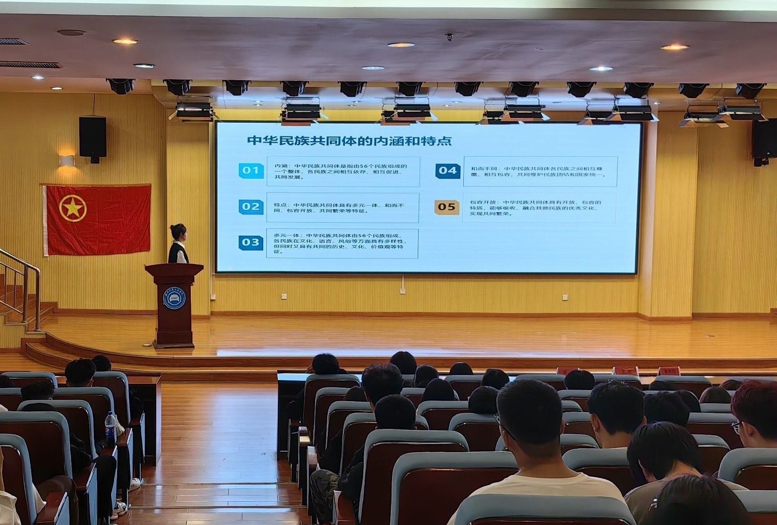 活动伊始,院员工会文体部部长崔荣荣以“石榴”为媒,引导同学们进入主题。接着她从“什么是铸牢中华民族共同体意识、为什么要铸牢中华民族共同体意识以及如何铸牢中华民族共同体意识”三方面分享了自己的学习体会,号召同学们做民族团结的践行者、促进者、守护者。