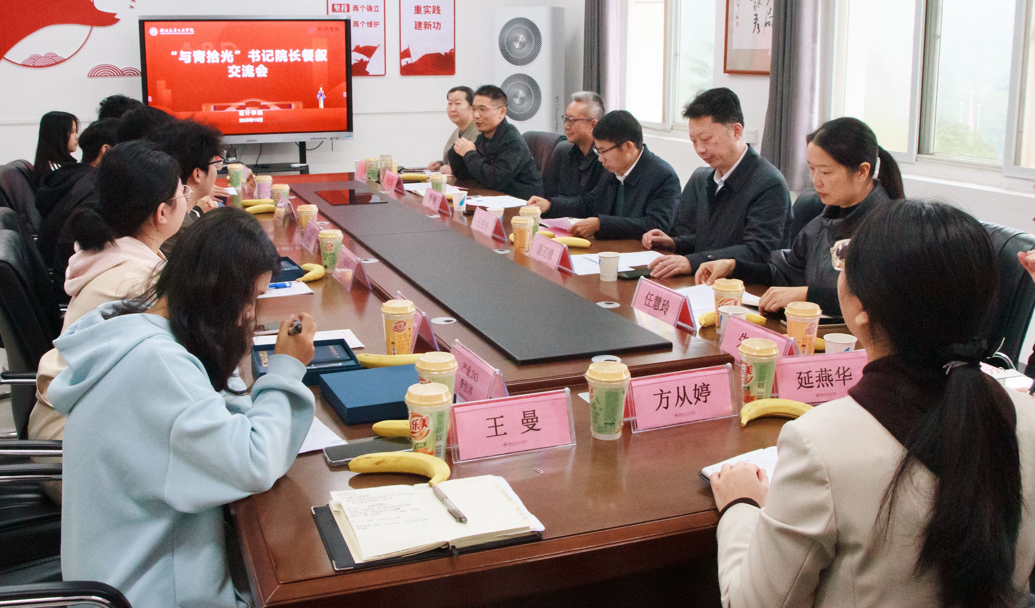 本网讯(文/方从婷、田慧轩 图/田慧轩)为深入推进“三全育人”综合改革,10月30日,taptap点点体育于1419会议室举办“与青拾光”书记经理餐叙会。副董事长王生怀,发规处处长原刃锋,审计处处长邱谦,建管处副处长任慧玲,公司党委书记黄进涛、副经理朱炜、副书记王新、学工办全体辅导员共同参与,与员工代表共话成长。