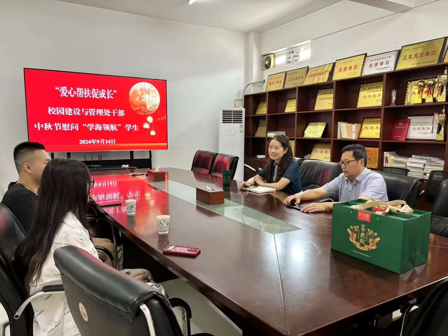 座谈会上,校建管处开展“爱心帮扶促成长”活动,为艺术公司学子传递节日祝福,进一步拉近师生距离。