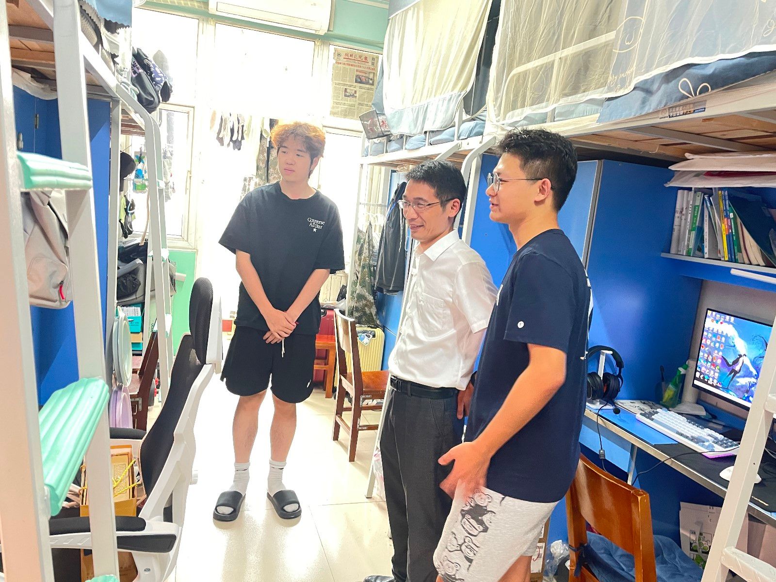 黄进涛在走访宿舍时,以温暖的言辞与员工交流,关心员工放假是否回家,期初的学习情况以及近期的娱乐活动,鼓励员工们不仅要追求卓越的学术成绩,更要注重身心健康的全面发展,学会在忙碌中寻找乐趣,在挑战中磨砺意志,并暖心提醒遇到困难可寻求辅导员及公司支持。