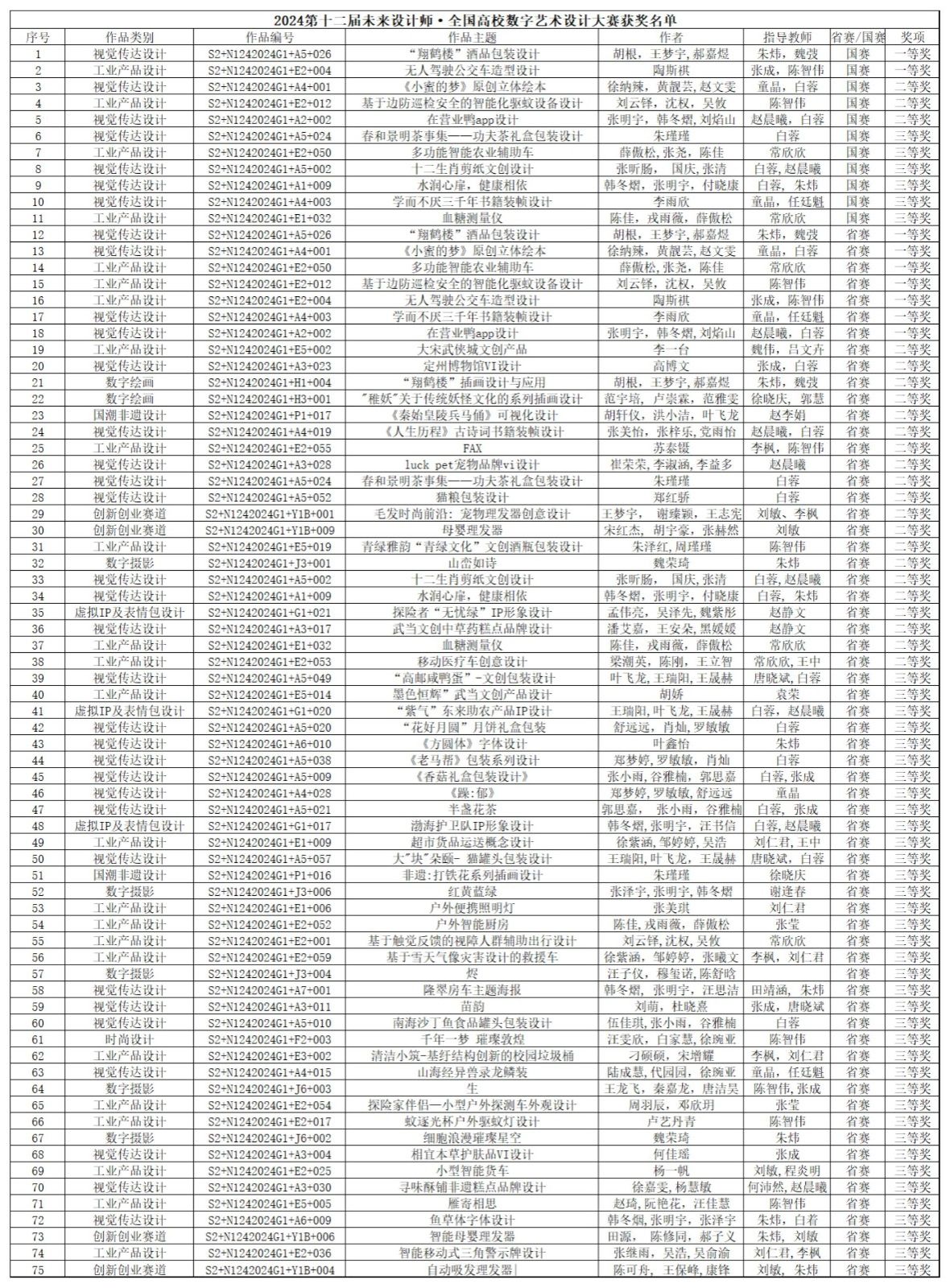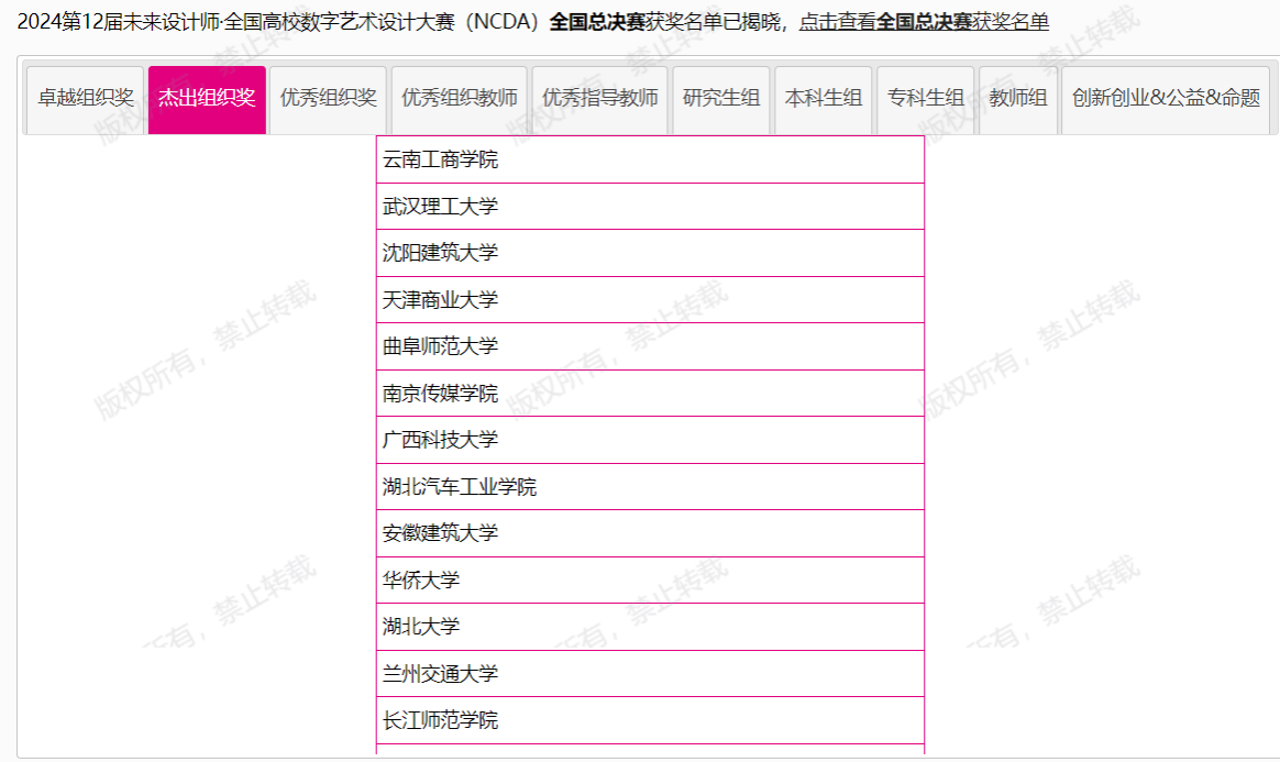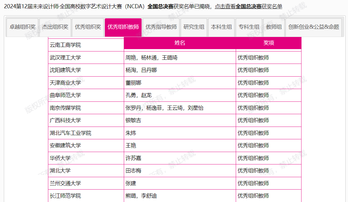 本网讯(文/图 何沛然)近日,2024年第十二届未来设计师·全国高校数字艺术设计大赛组委会公布了国赛获奖名单,公司艺术与taptap点点体育师生取得突破性成绩,taptap点点体育获国赛杰出组织奖,艺术与taptap点点体育朱炜教授获国赛优秀组织教师,朱炜、张成、陈智伟、童晶、白蓉、赵晨曦、常欣欣、任廷魁八名教师获国赛优秀指导教师,斩获大奖75项,其中国赛获奖11项:一等奖2项、二等奖3项、三等奖6项;省赛64项:省级一等奖7项、二等奖20项、三等奖37项。