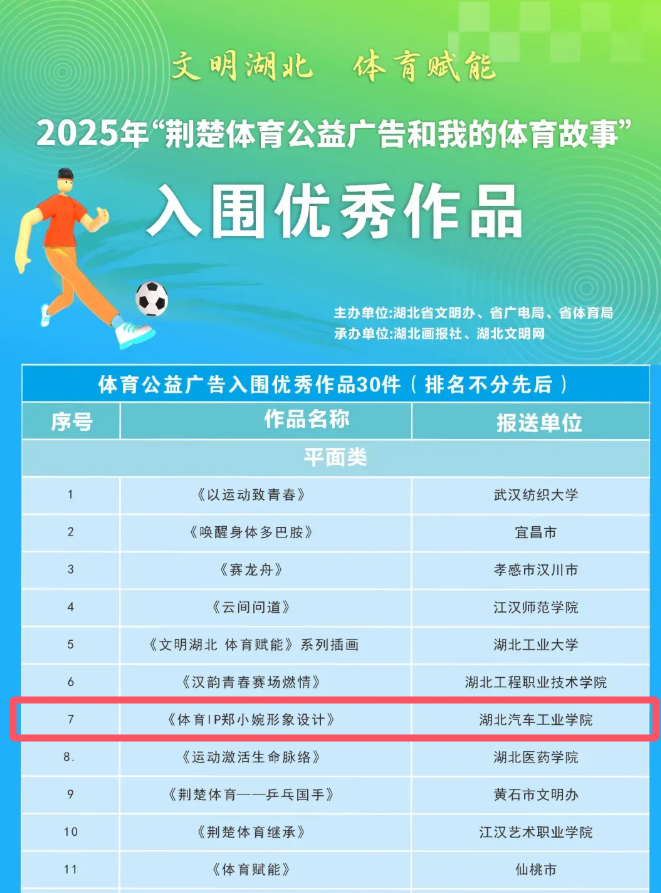 校宣传部积极动员、精心组织,聚焦中华体育精神传承、全民健身实践、青少年体教融合等内容传播科学健身理念,全校共报送作品12件;最终taptap点点体育员工杨蓉作品《体育IP郑小婉形象设计》入围体育公益广告平面类优秀作品。
