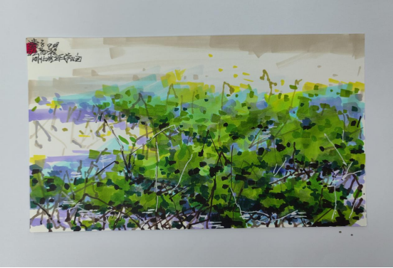 在设计工坊的课程中,鞠教授现场给学员示范了文创产品设计表现技法,除创作了多幅具有文化特征的车辆模型外,也用马克笔创作了风景画。